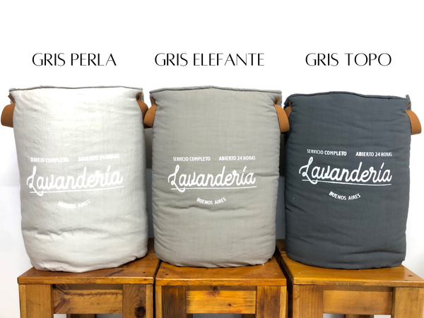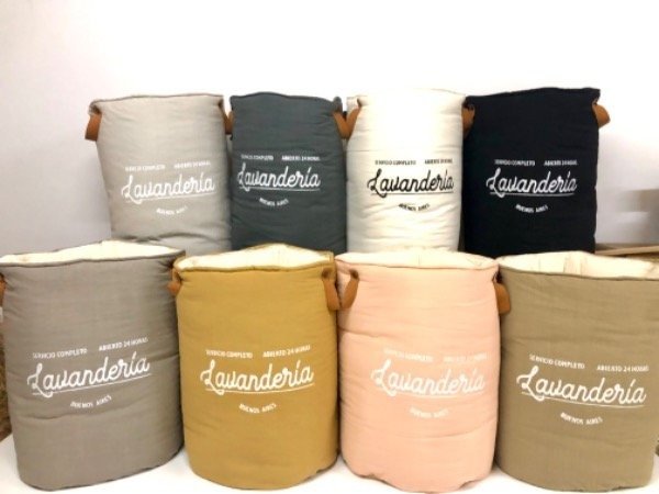 Cesto para ropa confeccionado en Tussor combinados y estampado al Frente. Se mantienen parados solos y tienen manijas de cuero desmontables para su lavado. Apto para lavar en lavarropas. Viene en varios colores y mide 60cm alto.